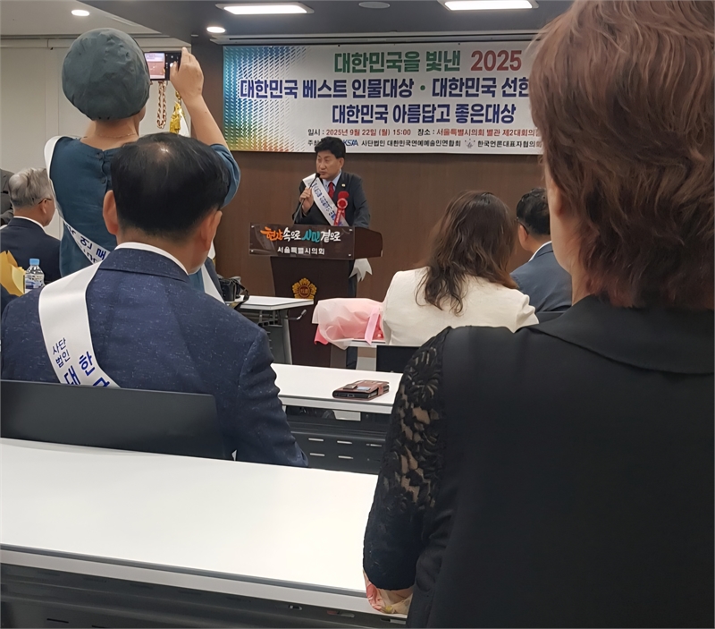 9월 22일 15시 서울시의회 별관 제2대회의실에서 사단법인 대한민국연예예술인연합회(총재 남상숙, 이사장 황계호), 한국언론대표자협의회가 주최 주관하는 2025 대한민국을 빛낸 베스트 인물대상, 선한 한국인대상, 아름답고 좋은대상 시상식행사에 지역사회를 빛낸 쟁쟁한 얼굴들이 추천되고 있다.