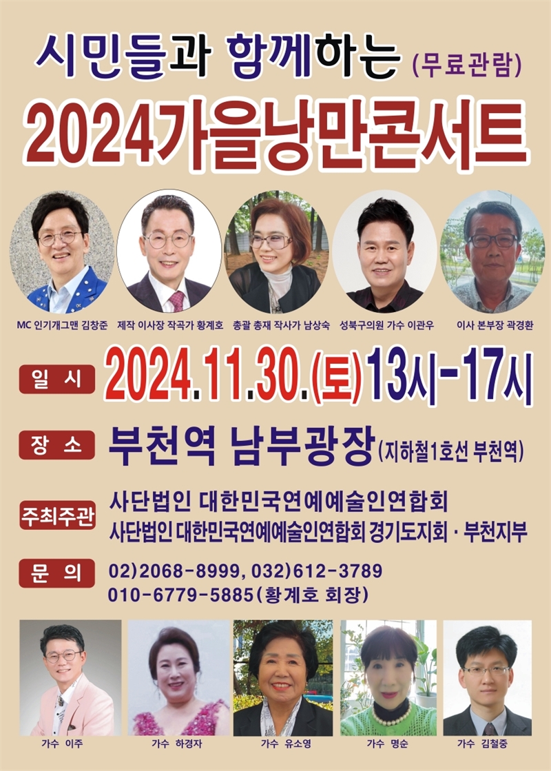 지난해 11월 30일 부천남부광장에서 2024 가을낭만콘서트(포스터)가 성황리에 열렸었다.